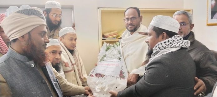 সোমবার (২৯ ডিসেম্বর) রাতে টাঙ্গাইল শহরস্থ পুরাতন বাসস্ট্যান্ডে টুকুর নিজ কার্যালয়ে টুকুকে শরিফুল ইসলাম কাসেমী ফুলেল শুভেচ্ছা জানান এবং জোটের প্রার্থীর পক্ষে একযোগে কাজ করতে নেতাকর্মীদের আহ্বান জানান। এসময় টুকুও সবাইকে সঙ্গে নিয়ে সন্ত্রাস, মাদক, চাঁদাবাজিমুক্ত, কিশোর গ্যাংমুক্ত, নিরাপদ ও আধুনিক টাঙ্গাইল গড়ার প্রত্যয় ব্যক্ত করেন।