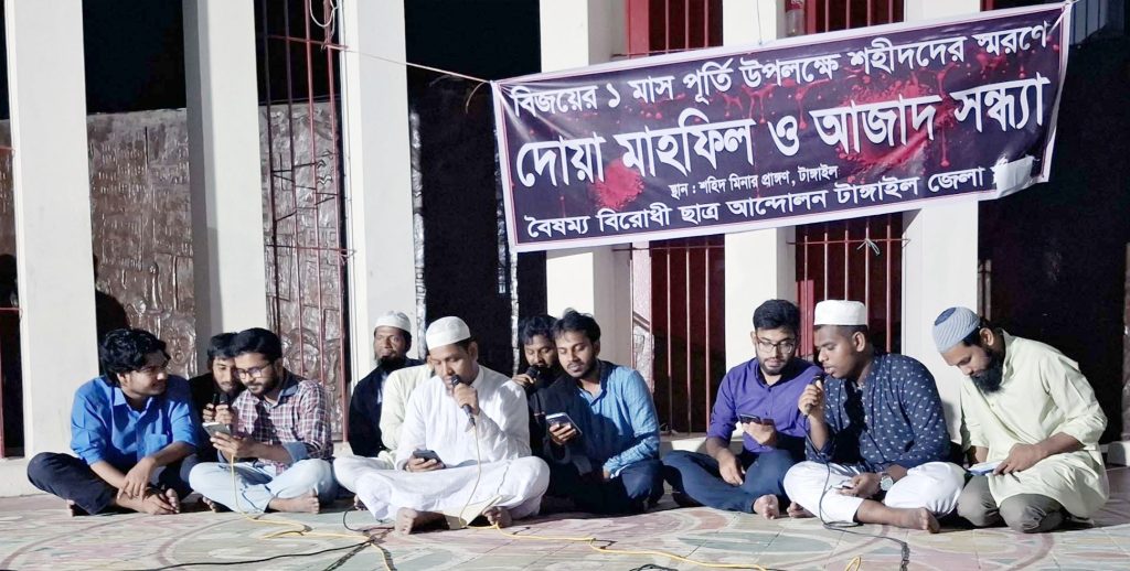 বৃহস্পতিবার (৫ সেপ্টেম্বর) সন্ধায় টাঙ্গাইল জেলা বৈষম্যবিরোধী ছাত্র আন্দোলনের উদ্যোগে