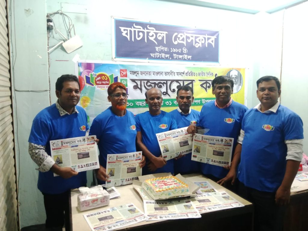 ঘাটাইল (টাঙ্গাইল) প্রতিনিধিঃ মজলুম জননেতা মাওলানা আব্দুল হামিদ খান ভাসানীর আদর্শে প্রতিষ্ঠিত পাঠকপ্রিয় দৈনিক মজলুমের কন্ঠ পত্রিকার ৩০ বছর পূর্তি ও ৩১তম বর্ষে পদার্পণ উপলক্ষে ঘাটাইল প্রেসক্লাবে সোমবার বিকালে কেক কাটা ও আলোচনা সভা অনুষ্ঠিত হয়েছে।অনুষ্ঠানে দৈনিক মজলুমের কণ্ঠের নিজস্ব প্রতিবেদক মোঃ নুরুজ্জামান মিঞার সভাপতিত্বে এ সময় উপস্থিত ছিলেন মজলুমের কন্ঠের ঘাটাইল প্রতিনিধি রেজাউল করিম রাজু, প্রেসক্লাবের ভারপ্রাপ্ত সভাপতি সাইয়্যিফ মোহাম্মদ হামিদুল্লাহ ও ভারপ্রাপ্ত সাধারন সম্পাদক বিষ্ণু প্রিয় দীপ, সাবেক সভাপতি মোঃ নজরুল ইসলাম, সিনিয়র সাংবাদিক আনোয়ার হোসেন বকুল ও গোলাম মোস্তফা প্রমুখ।