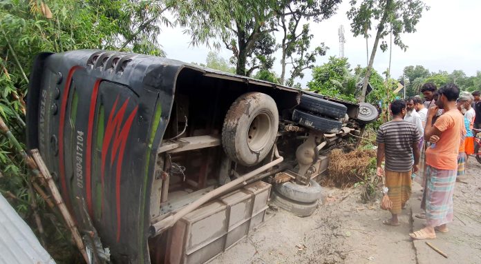 নিজস্ব প্রতিবেদক: বেপরোয়া গতির দুই বাসের আগে প্রতিযোগিতার সময় টাঙ্গাইলের ভূঞাপুরে মোড় ঘুরাতে নিয়ন্ত্রণহীন হারিয়ে বেপরোয়া গতির এক বাসের চাপায় আব্দুল হালিম (৫৫) নামে এক পথচারী নিহত হয়েছেন। এ ঘটনায় নারী-শিশুসহ আহত হয়েছেন কমপক্ষে আরও ১০ জন।