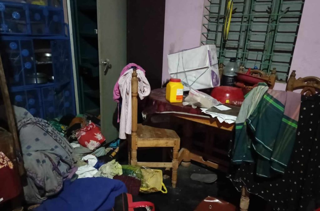 টাঙ্গাইলের সখীপুরে স্কুল শিক্ষকের বাড়িতে দুর্ধর্ষ ডাকাতির ঘটনা ঘটেছে। বাড়ির তত্ত্বাবধায়ককে বেঁধে রেখে ডাকাতরা নগদ ২ লক্ষ টাকা ও কয়েক ভরি স্বর্ণালংকার লুট করে নিয়ে যায়। ঘটনার পরপরই টাঙ্গাইলের সহকারী পুলিশ সুপার, সখীপুর থানা ভারপ্রাপ্ত কর্মকর্তা ও গোয়েন্দা সংস্থার কয়েকটি টিম ঘটনাস্থল পরিদর্শন করেছেন। সোমবার রাত আটটায় উপজেলার চকচকিয়া শ্রীপুর গ্রামে ছোটচওনা পাবলিক উচ্চ বিদ্যালয়ের সহকারী শিক্ষক নাজমুল হুদার বাড়িতে এ ঘটনা ঘটে। এলাকাবাসী ও পুলিশ সূত্রে জানা যায়, সোমবার রাতে শিক্ষক নাজমুলের বাবা তারাবির নামাজ পড়তে পার্শ্ববর্তী মসজিদে যান। বাবা বয়ঃ বৃদ্ধ হওয়ায় তার মাও উনার সাথে যান। এ সময় তত্ত্বাবধায়ক একা বাড়িতে ছিলেন এই সুযোগে রাত আটটার দিকে ৭-৮ জনের একদল ডাকাত বাড়িতে ঢুকে তত্ত্বাবধায়ককে খুটির সাথে বেঁধে রেখে ঘরের দরজা ভেঙে, ভেতরে প্রবেশ করে প্রায় দুই লক্ষ নগদ টাকা, তিন-চার ভরি স্বর্ণালংকার লুট করে এবং ঘরে থাকা ওয়ারড্রব, আলমারি, সুকেছ সবকিছুর তালা ভেঙে লন্ডভন্ড করে। ৩০-৪০ মিনিটব্যাপী তাদের এই তাণ্ডব চলে। ডাকাতরা নির্বিঘ্নে বাড়ি থেকে বেরিয়ে গেলে বাড়ির পার্শ্ববর্তী মসজিদে ডাকাতির ঘটনা ঘোষণা হওয়ার পর এলাকার লোকজন এগিয়ে আসে। এ ঘটনায় শিক্ষক নাজমুল হুদা বাদী হয়ে সখীপুর থানায় ডাকাতি মামলা করেছেন। রাতেই ঘটনাস্থল পরিদর্শন করেছেন টাঙ্গাইলের সহকারি পুলিশ সুপার মুহাঃ শরীফুল ইসলাম, থানা ভারপ্রাপ্ত কর্মকর্তা মোঃ জাকির হোসেন ও গোয়েন্দা সংস্থার কয়েকটি টিম।