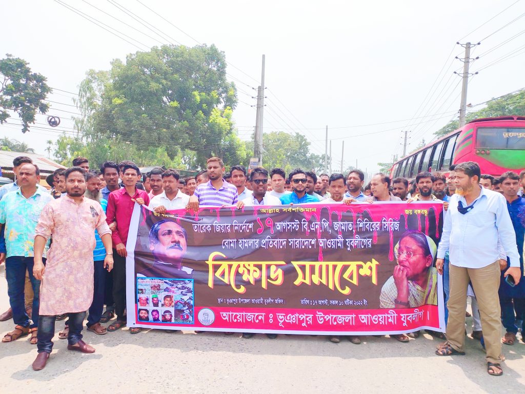- নিজস্ব প্রতিবেদক: ২০০৫ সালের ১৭ আগস্ট বিএনপি-জামায়াত শিবিরের মদদপুষ্ট নিষিদ্ধ জঙ্গি সংগঠন জেএমবি’র একযোগে রাজধানীসহ দেশজুড়ে ঘৃণা ও নরকীয় সিরিজ বোমা হামলার প্রতিবাদে টাঙ্গাইলের ভূঞাপুরেও বিক্ষোভ মিছিল এবং আলোচনা সভা করেছে উপজেলা আওয়ামী যুবলীগের একাংশের নেতাকর্মীরা।